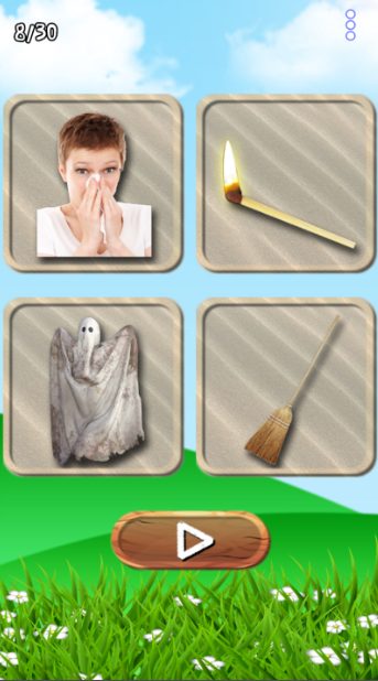 Aplicación para asociar imágenes y sonidos. Amplio abanico de acciones y objetos.