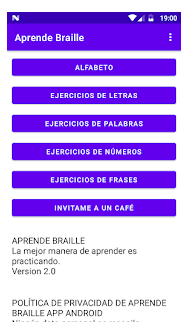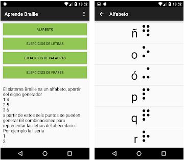 Aplicación destinada a personas invidentes para el aprendizaje del braille, a través de las letras del alfabeto, palabras, frases y números.