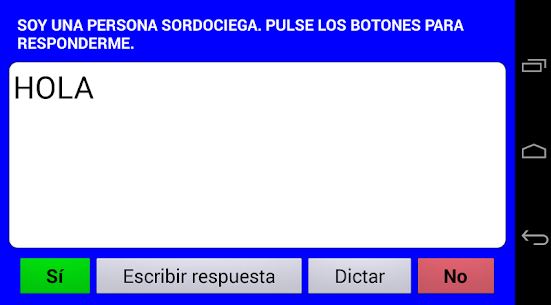 App que permite a la persona sordociega emitir mensajes escritos pregrabasos con anticipación.