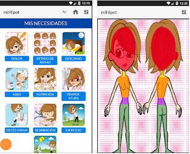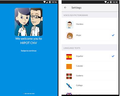 miHIPOT CNV es una herramienta que facilita la comunicación a personas que sufren de dificultad en la expresión oral, bien por enfermedad bien por dificultades con el idioma. La aplicación consiste en un lenguaje audiovisual compuesto por pictogramas y voces sintetizadas. Inicialmente diseñado para su uso hospitalario pero puede ser también empleado por personas extranjeras.