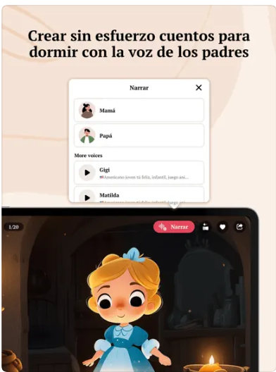 Aplicación con Inteligencia Artificial que permite grabar tu voz. Podrás leer cuentos, contar historias, explicar situaciones, etc.