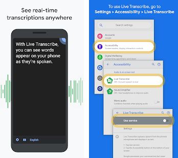 Transcripción instantánea es una aplicación de accesibilidad diseñada para personas sordas o hipoacúsicas. Ésta muestra en la pantalla transcripciones de voz y sonido en tiempo real para que se pueda participar fácilmente en las conversaciones y también, escribir las respuestas en la pantalla.