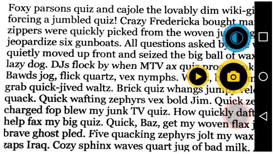 Aplicación de lente de aumento. Aumenta hasta ocho veces el zoom y cuenta únicamente tres botones grandes de diferentes colores que facilitan un acceso rápido a todas las funciones.