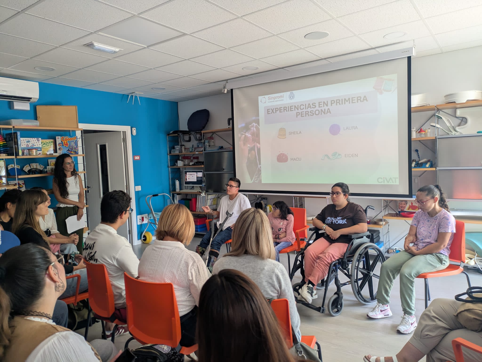 El equipo del CIVAT ofreció al alumnado una charla formativa donde se les explicó que es Sinpromi, cuales son los servicios del CIVAT y se les acercó a los conceptos de Accesibilidad Universal como llave de la Sociedad Inclusiva que entre todos hemos de conseguir.