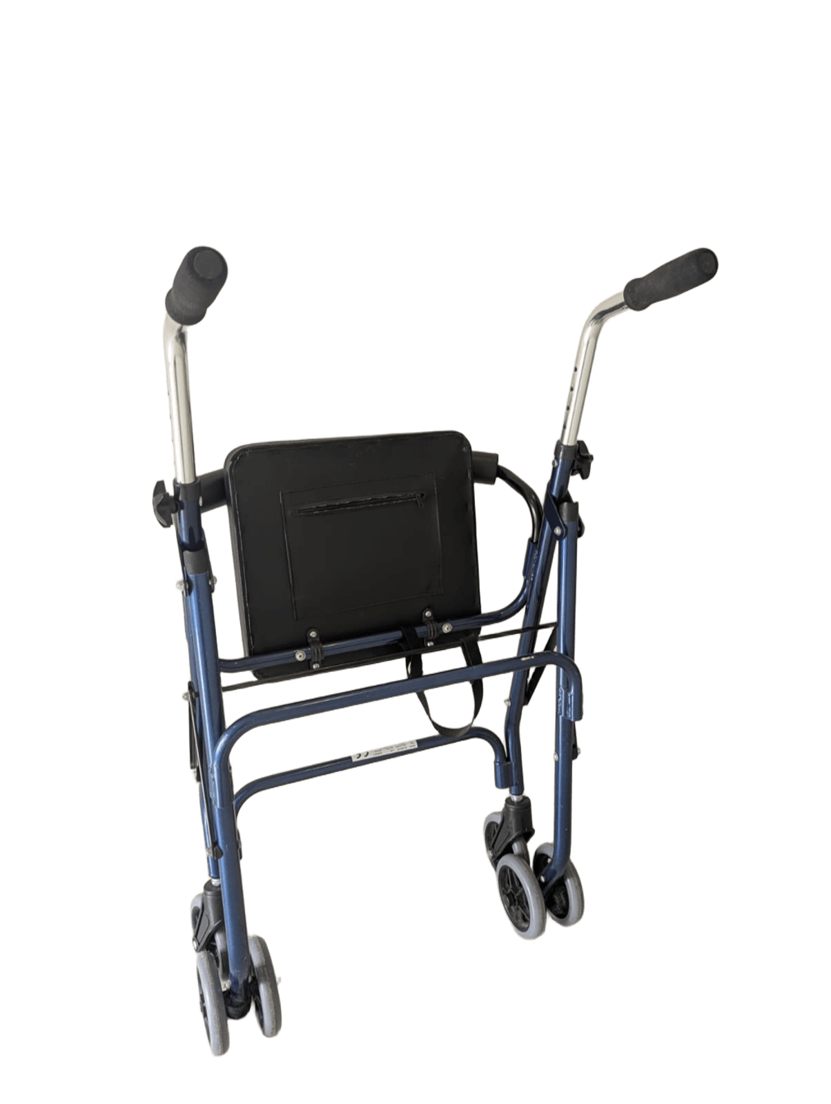 Andador ligero, plegable, con 4 ruedas y asiento con respaldo. Se puede plegar.