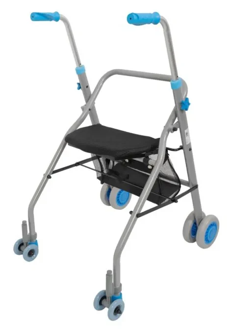 Este andador con frenos por presión permite disminuir el esfuerzo al caminar. No es necesario levantar el andador para poder avanzar gracias a sus ruedas. Se frena presionando o dejando caer el peso sobre las empuñaduras. Se puede plegar.