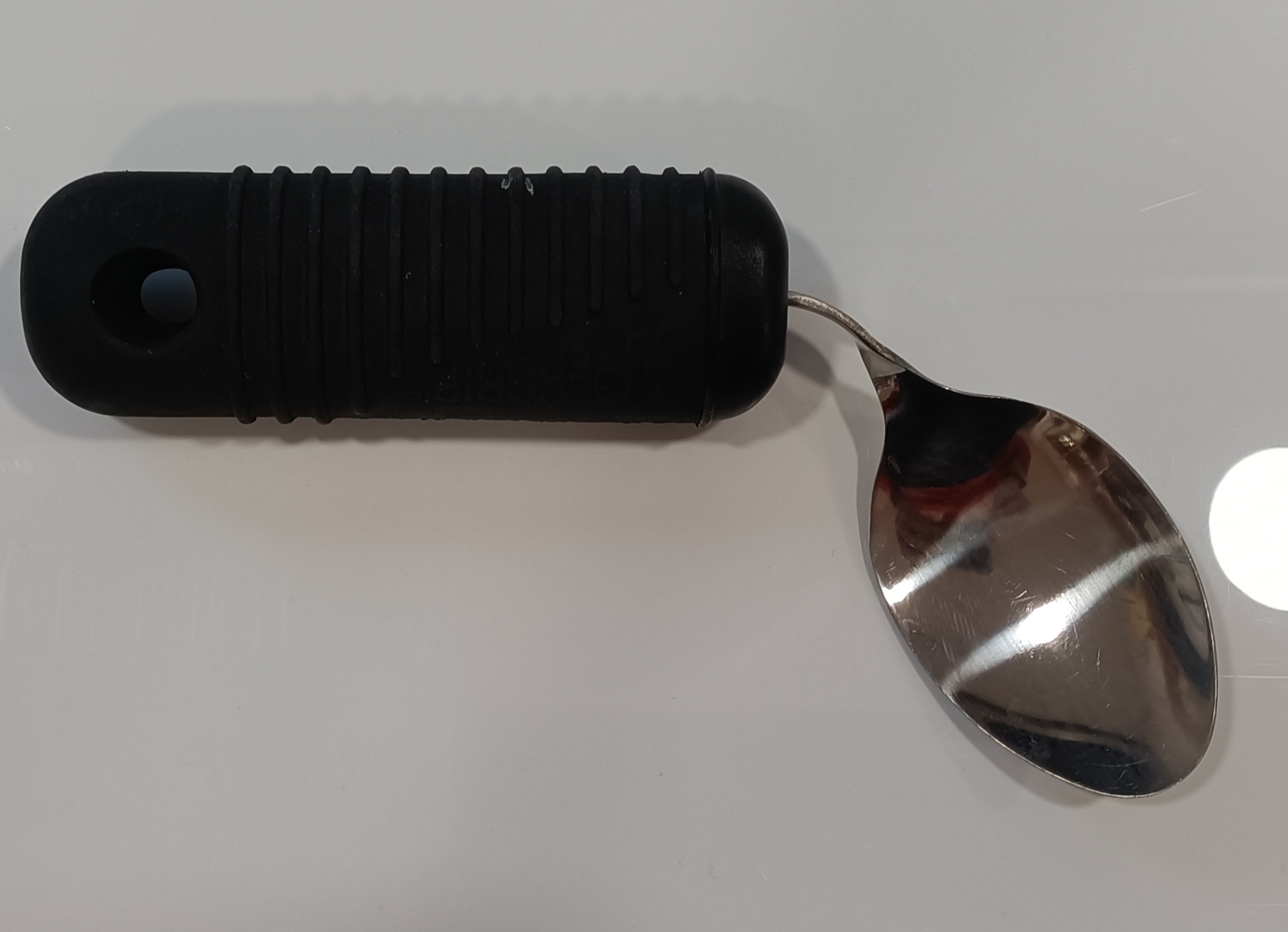 Cuchara con mango grueso, se puede curvar hacia el lado que sea necesario.