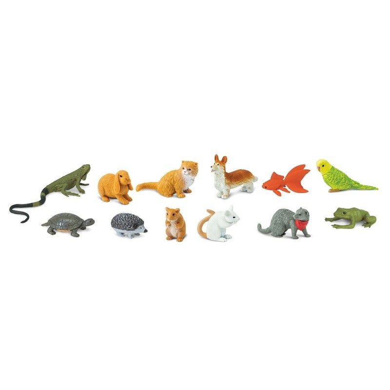 Estos 12 figuritas representan las nuevas mascotas: iguana, tortuga, rana, erizo, ratones… Pero sin olvidar los animales tradicionales: gato, perro, hamster, conejo, pez, loro… Dim. 4 a 11 cm. A partir de 3 años.