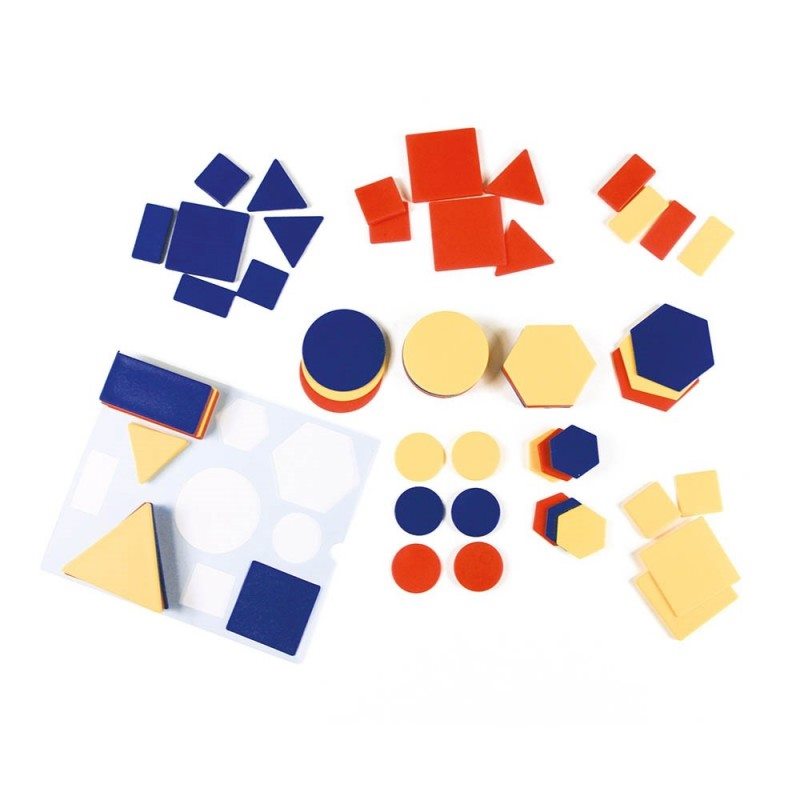 Estas 60 formas geométricas permiten una gran variedad de actividades de clasificación y separación. Puede abordar las secuencias, las equivalencias y las diferencias… 5 formas geométricas diferentes en 3 colores , en 2 tamaños y 2 grosores.¡ Incluye una plantilla para dibujar las formas y crear modelo! Dim. De 2 a 8 cm. A partir de 6 años.