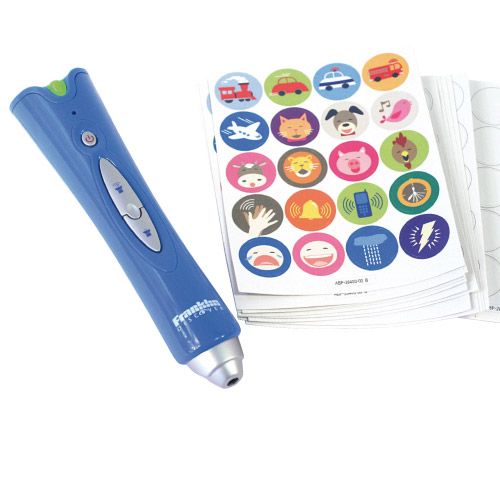 Este bolígrafo grabador funciona con viñetas de pegatina que puede pegar en el soporte que desee: páginas de libros, paneles, objetos diversos. Grabe un mensaje sobre el boli emparejándolo con una viñeta. Tiene hasta 60 horas de grabación posible. Entregado con 120 viñetas pregrabadas con sonidos diversos (ruidos de animales, vehículos, objetos. acciones…) y 400 viñetas vírgenes sobre las que puede grabar los sonidos de su lección. Puede también personalizar dibujando o imprimiendo encima. Estas viñetas pueden reposicionarse siguiendo las instrucciones del fabricante.