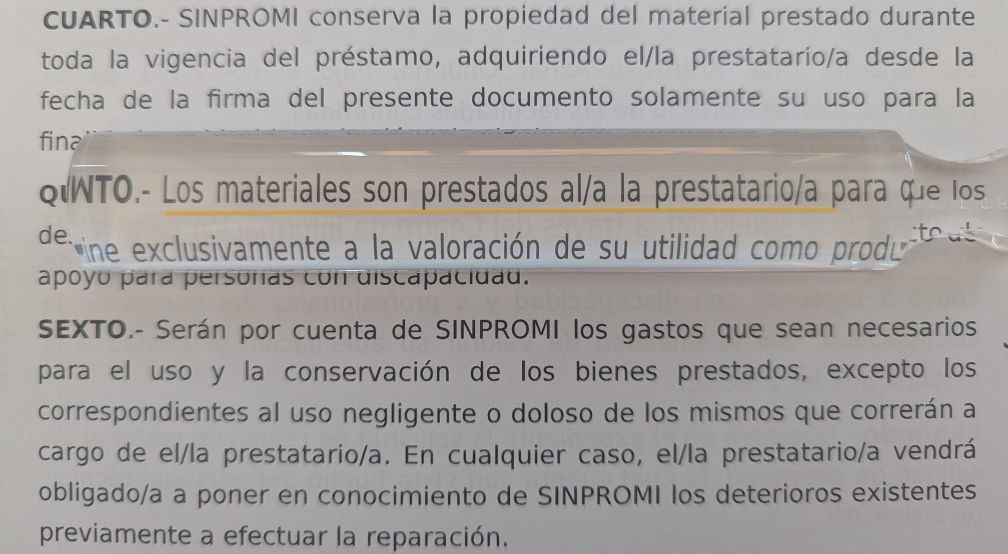 Lupa barra acrílica con guía amarilla.