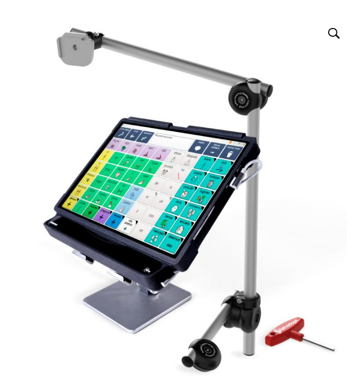 Equipo completo e integrado de comunicación. Para personas con necesidades complejas de comunicación que no pueden hablar y tienen que acceder a la CAA o al ordenador a través de la mirada. El equipo está compuesto por: