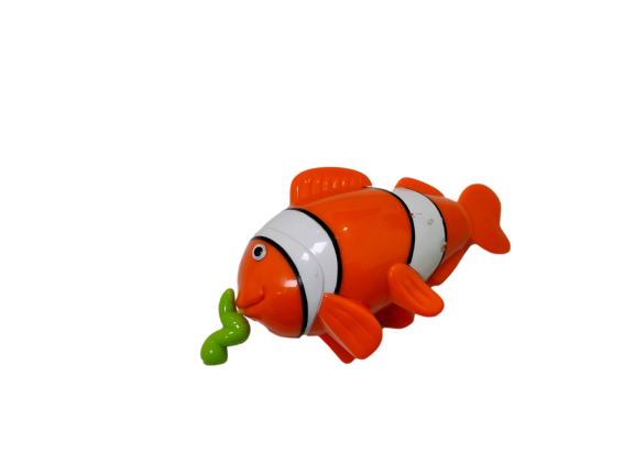Pez de juguete con un hilo en la boca del cual cuando tiramos hacemos que el pez mueva la cola.