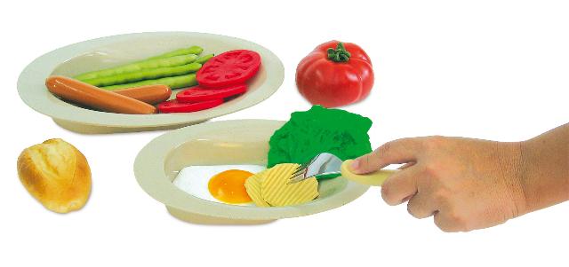 Platos con fondo en pendiente y pared alta, ideales para personas que solo pueden utilizar una mano o con dificultad para coger los alimentos con los cubiertos.