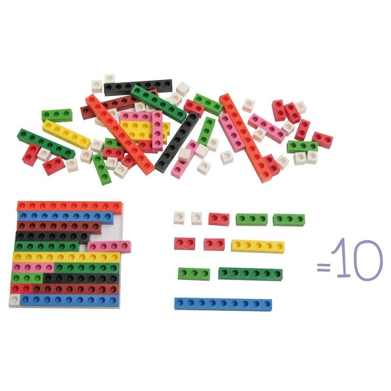 Esta caja con 86 regletas es un material de manejo y aprendizaje del recuento. Las barras de colores facilitan la percepción, la construcción y la memorización de los números. Puede usarse con la regla de los números vendida por separado. De plástico. 1 tablero + 1 guía. Dimensiones tablero 10 x 10 cm. Desde 3 años.