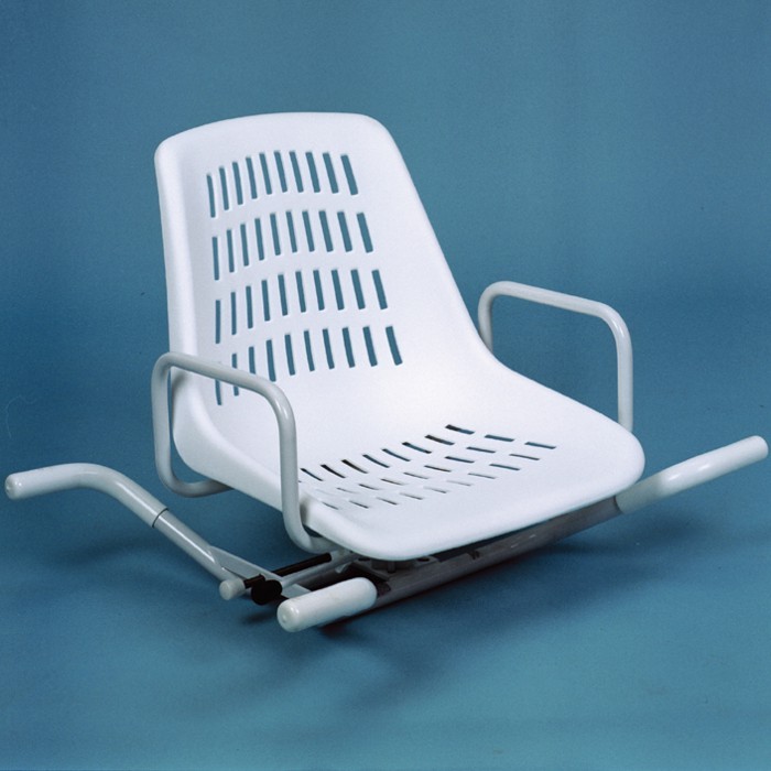 Silla que facilita el acceso a la bañera a aquellas personas que tienen limitada su capacidad funcional y no pueden hacerlo de manera independiente. Fijación a la bañera sin obras mediante dos topes acolchados. Apoyabrazos incorporados para mayor seguridad. Palanca de giro con cuatro posiciones y posición de bloqueo, tanto a la entrada como a la salida de la bañera. Asiento de plástico con agujeros de drenaje. Se puede desmontar en dos piezas para un mejor almacenaje y transporte.