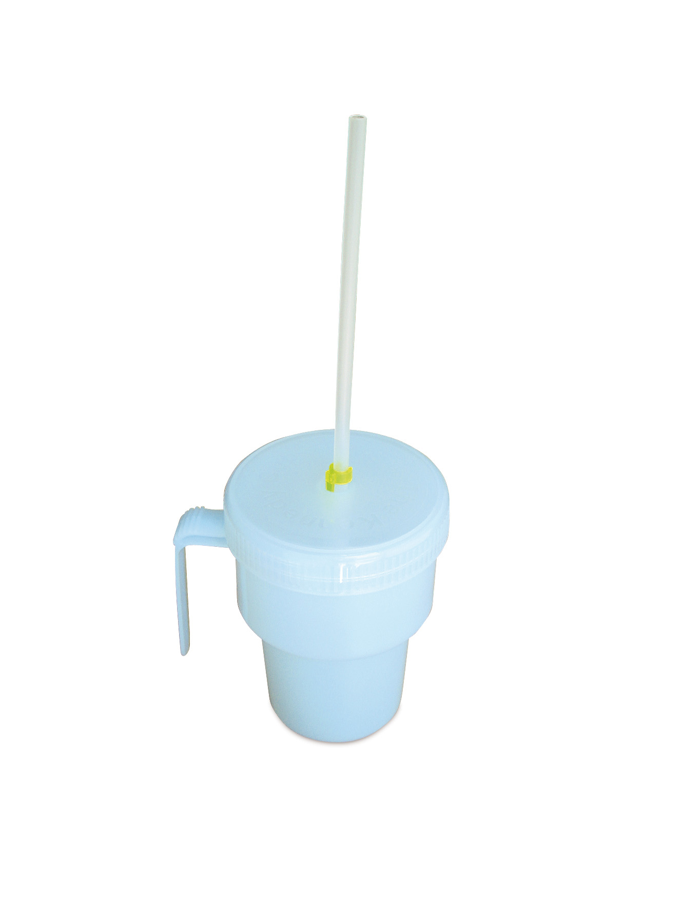 Taza con sistema antiderrame, su asa es ideal para personas con poca fuerza en las manos y puede usarse tanto por personas diestras como zurdas. La tapa de rosca evita cualquier tipo de escape, el orificio permite utilizar cualquier pajita estándar.